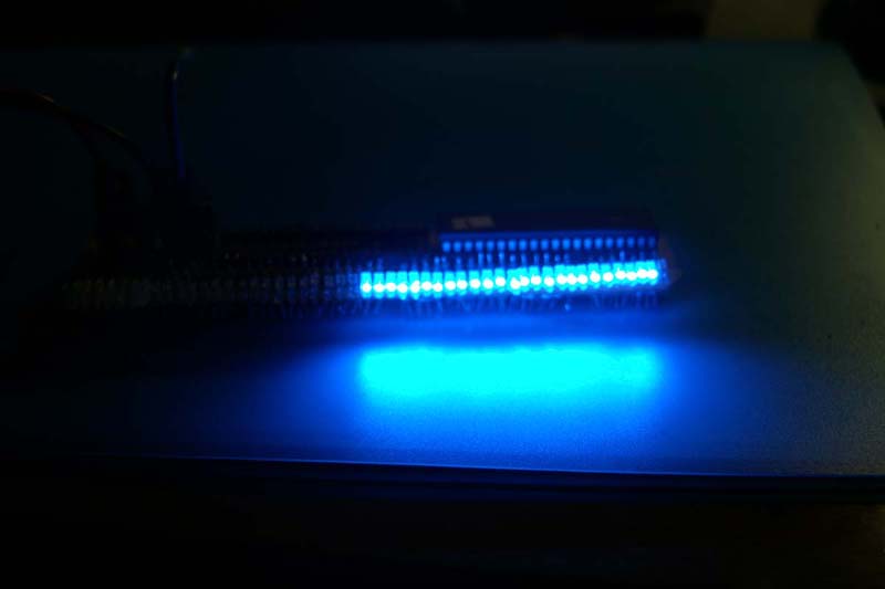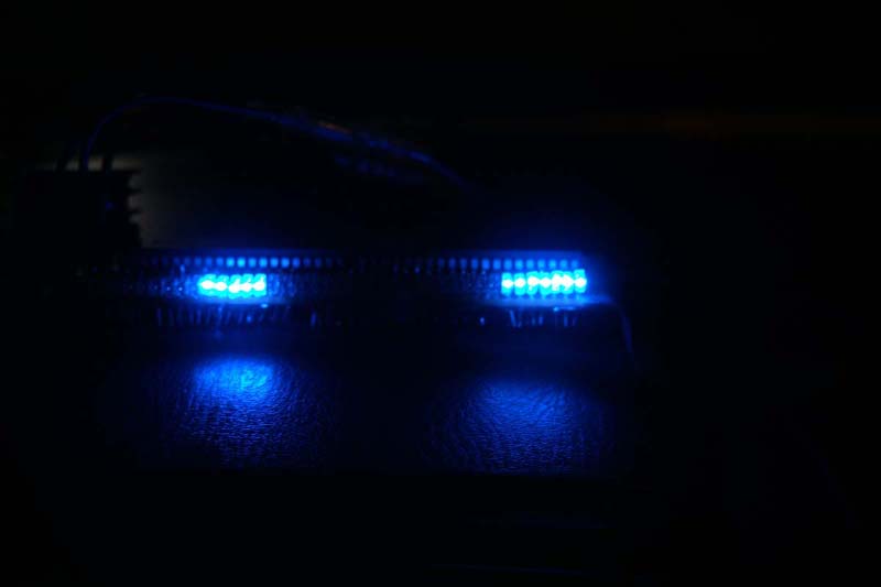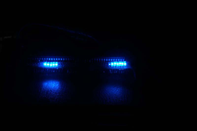減光時の方で右のほうは7個目のLEDがちらっと点灯しています。左側ではこの現象を少し押さえ込んであります。
