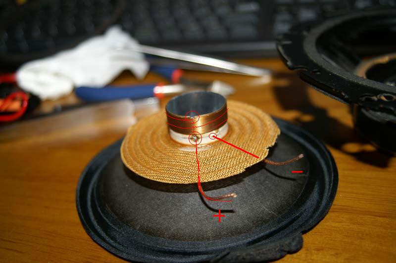 何とかうまい具合に繋げたようです。抵抗を測ってみるとちゃんと4Ωあるようなので組み立てに掛かります。
