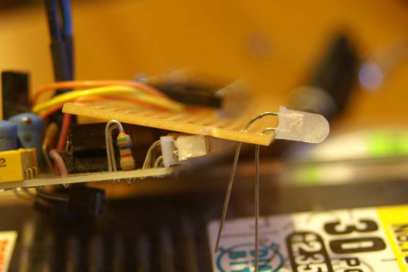 完成した基板のLEDの足が長いのは調整用です。メーターに収まらなかったときに半田を溶かしながら調整ということで・・