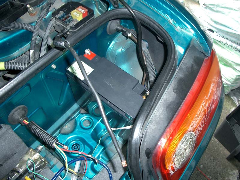 純正バッテリーだとカーペットの切れ目部分まで狭いトランクスペースを占領されていたので、かなり広くなります。
