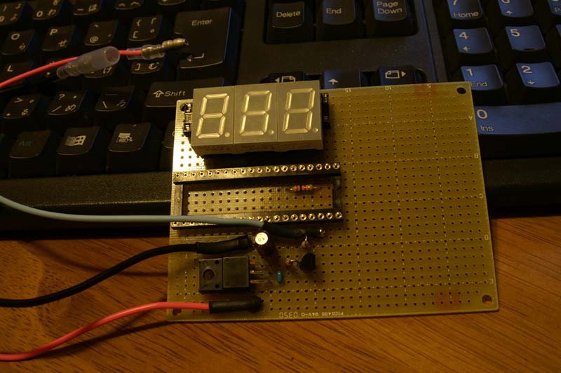 2個のサーミスタで外気温と内気温を表示しています。凄くいい加減な回路のため、温度表示の方は